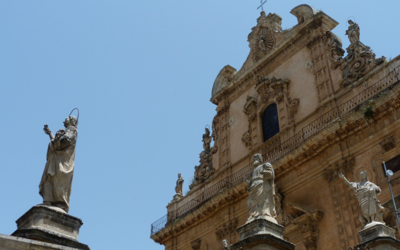 Modica was built around a junction of steep valleys. It is divided into two districts: The historic Modica Alta (Upper Modica) and the newer Modica Bassa (Lower Modica). The town’s grand churches and monuments showcase Baroque architecture, with the most remarkable building being the Duomo di San Giorgio.
