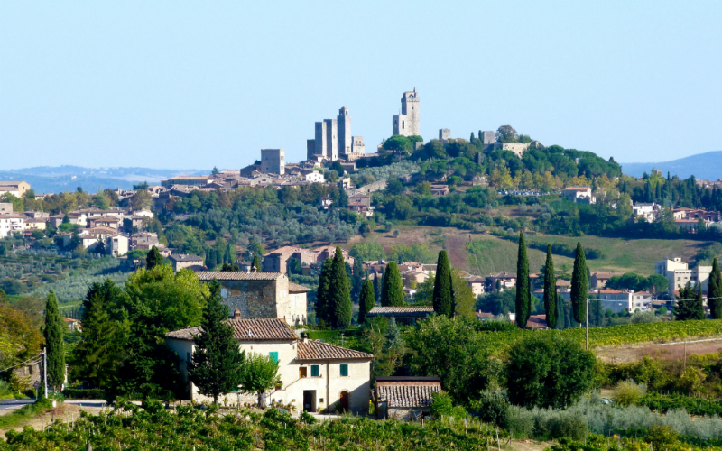 This little walled medieval hill town in the province of Siena is a well-known attraction, having retained a feudal atmosphere and appearance. Known as the town of fine towers, San Gimignano is surrounded by walls that were built in the 13th-century, with rows of medieval houses that form a triangle. The skyline is breathtaking: Hilltop setting, encircling walls and a total of 14 towers of different heights.